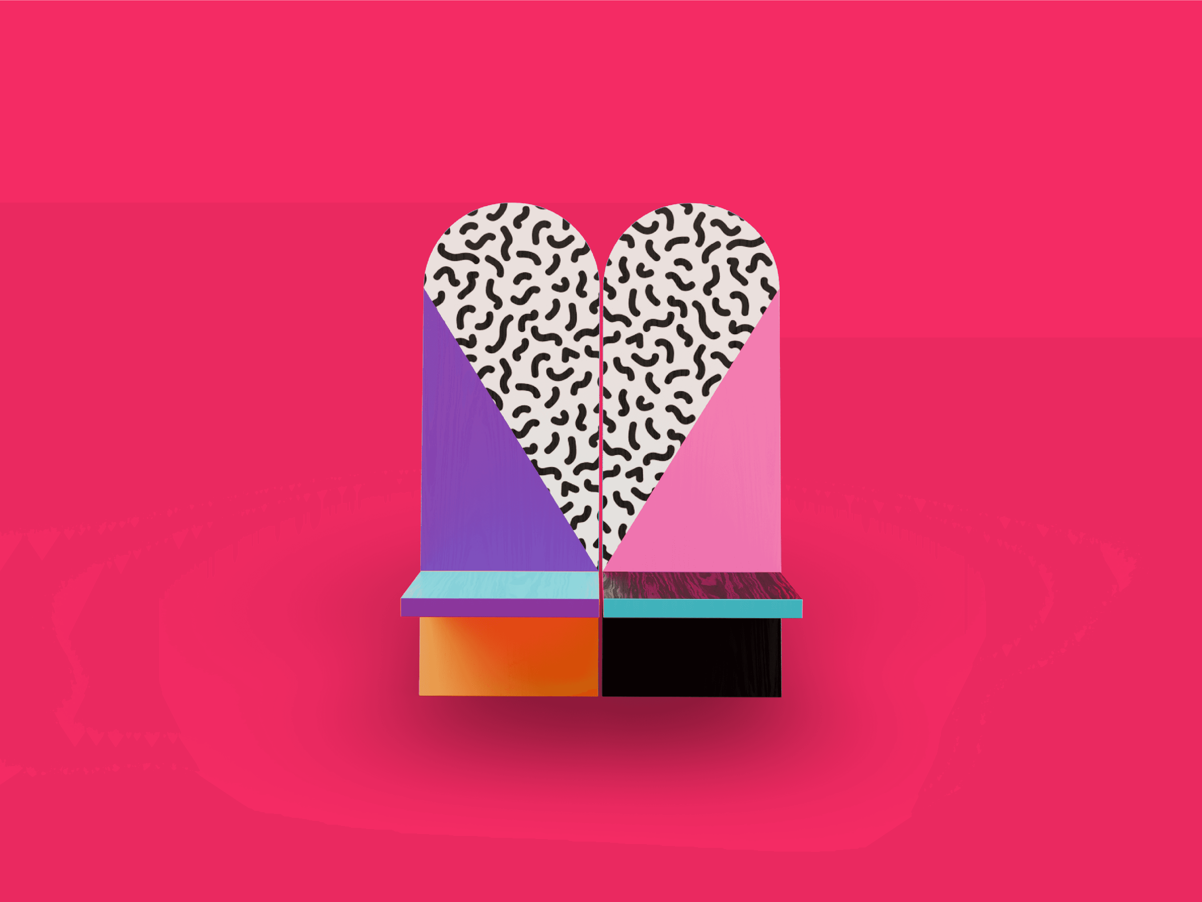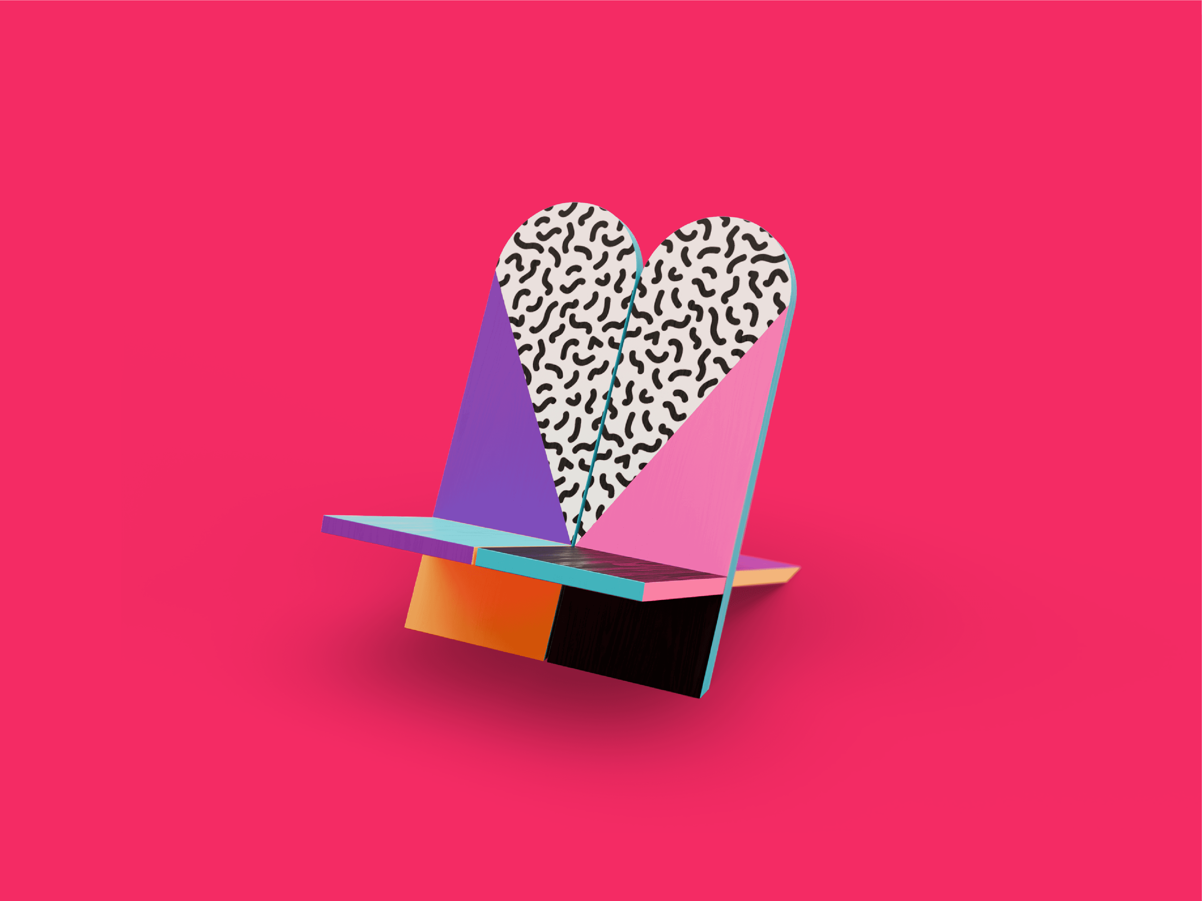 A modular festival chair inspired by the ancient “viking chair”, reimagined with a Memphis‑influenced aesthetic. Designed to spark interaction, the mirrored backs form a heart when paired. A winning entry in the competition, six chairs were installed at Pukkelpop’s Artist Village in 2025.