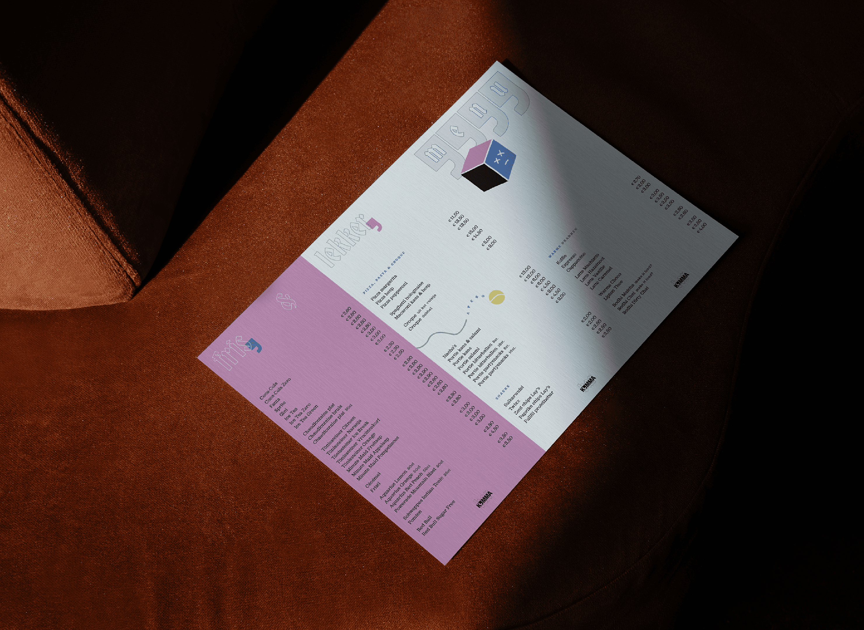 A contemporary, illustrative identity built around openness and play. The Hasselt dialect name “Komma”, meaning “come on in”, shaped a warm and inviting tone of voice. Located at a tennis and padel club, the brand is designed to resonate with both communities through a clean, energetic and welcoming visual system.