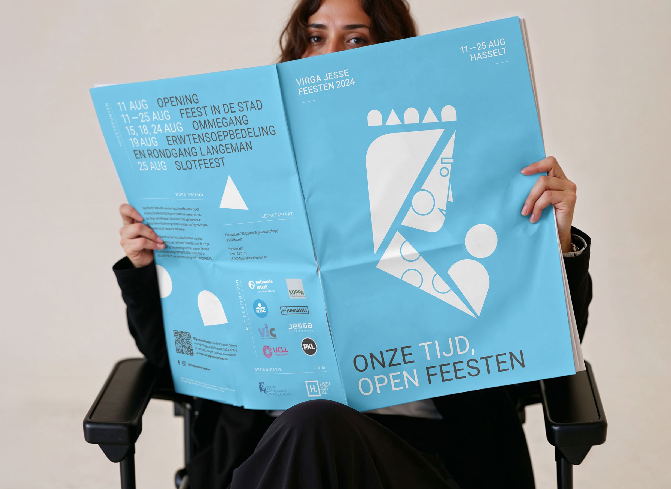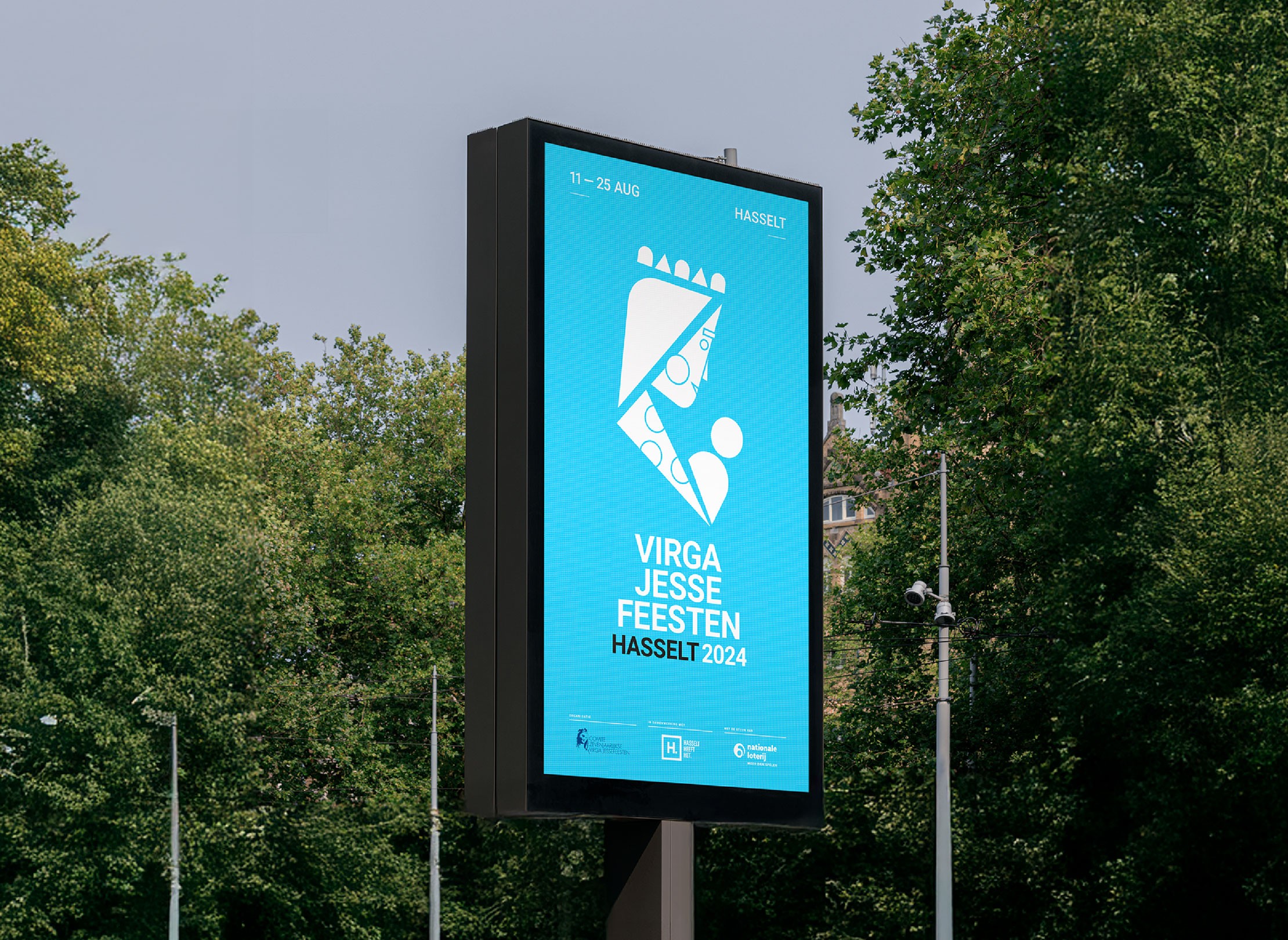For the 47th Virga Jessefeesten in Hasselt, I designed the key visual and refreshed identity. Inspired by the statue’s silhouette, the abstract design and vibrant palette reflect inclusivity. A hidden ‘7’ nods to the festival’s seven-year rhythm.