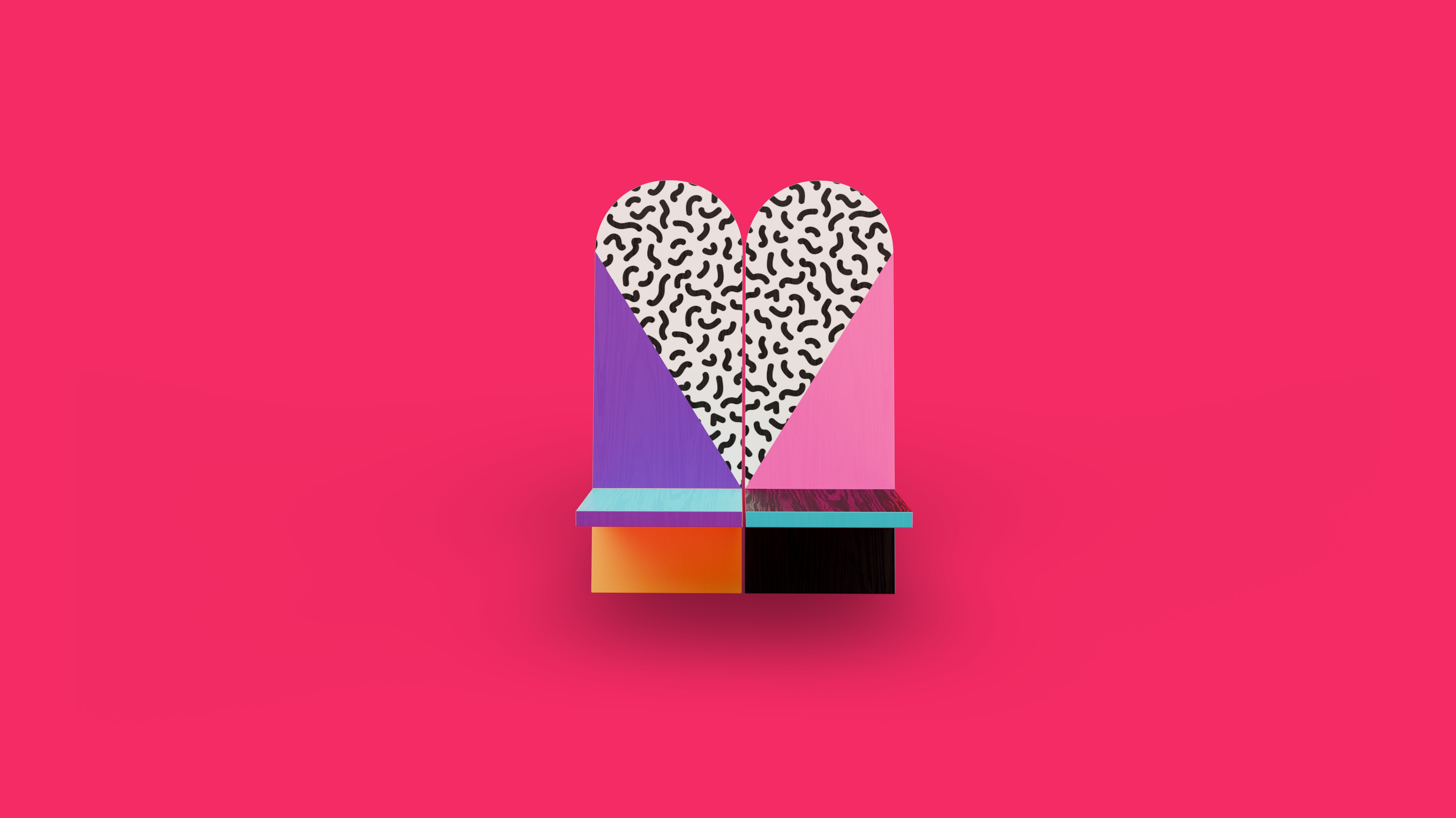 A modular festival chair inspired by the ancient “viking chair”, reimagined with a Memphis‑influenced aesthetic. Designed to spark interaction, the mirrored backs form a heart when paired. A winning entry in the competition, six chairs were installed at Pukkelpop’s Artist Village in 2025.